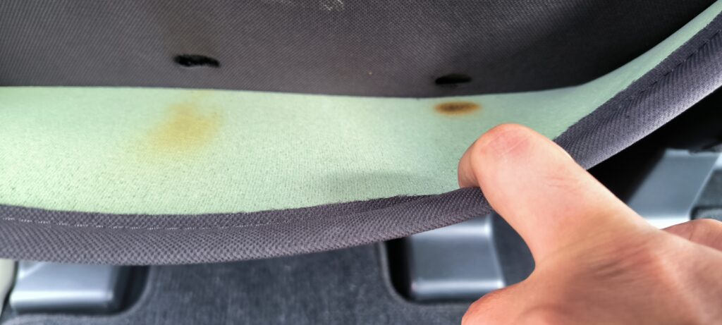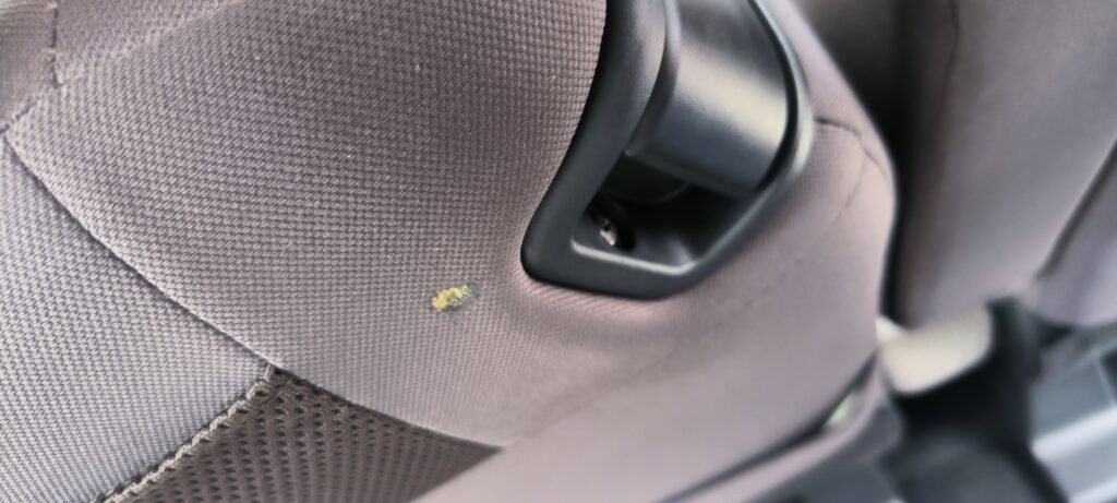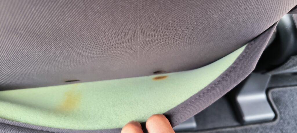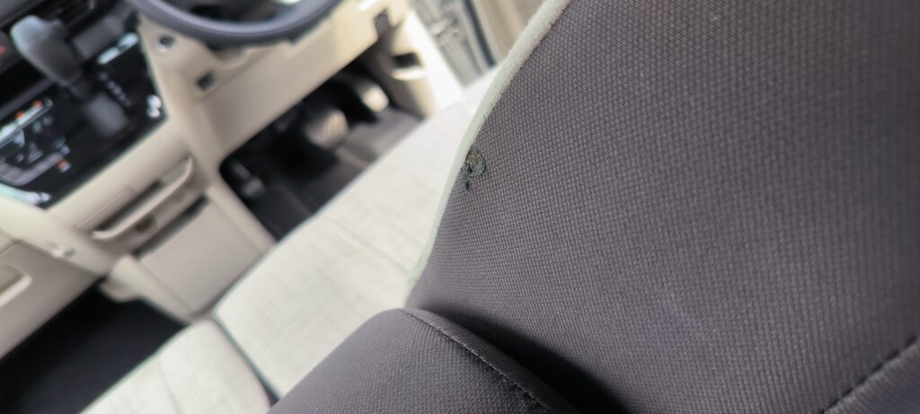 実際には助手席ではなく運転席のヘッド部分側面にタバコの後のようなものがありました。