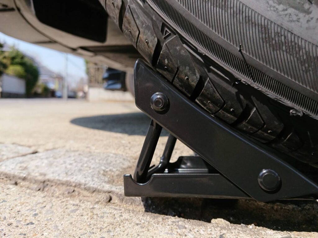 車両の下に潜る必要がある整備などではジャッキスタンドはより強度の高いガッチリとしたものを使用するべきですが、タイヤ交換程度であればジャッキ破損や油圧抜け対策に耐荷重を満たしたジャッキスタンドを1本を使用することも多いと思います。