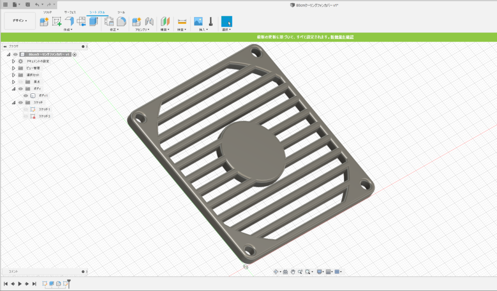 3D-CADでモデリングし、愛機ファンカバーのモデリングデータを作成しました。